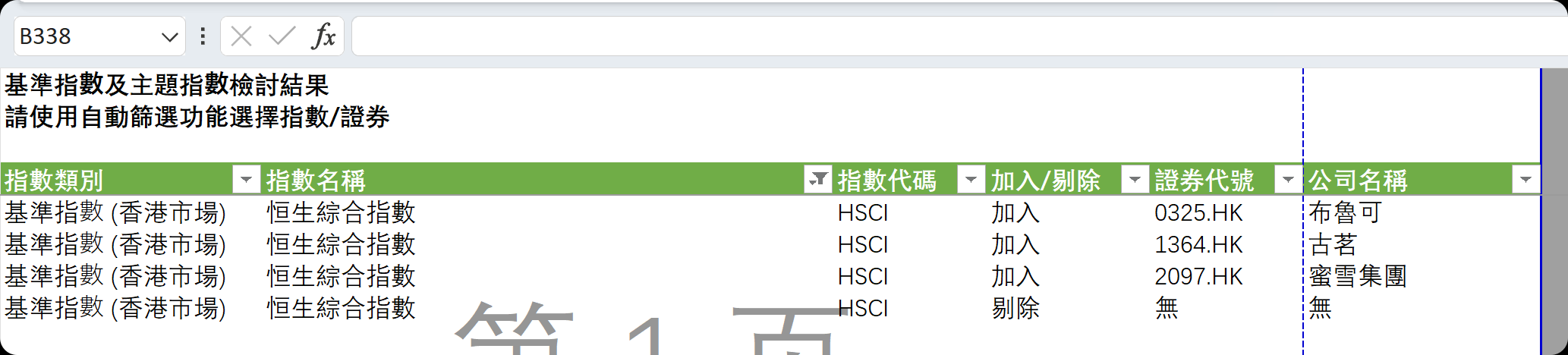 恒生指数季度度指数审议,3月31日、9月30日为审议日期。大概每年5、11月下半月的周五出结果。每年6月和12月的第一个周五—沪深交易所公布名单,调整公布名单会在公布后的下一个周一生效