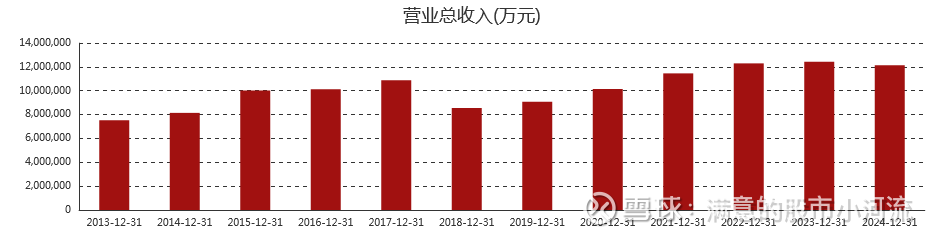 可以看出,自2018年开始营收逐步上涨,但幅度并不太大。2024年营收甚至略微下降。整体并没有特别亮眼的地方。