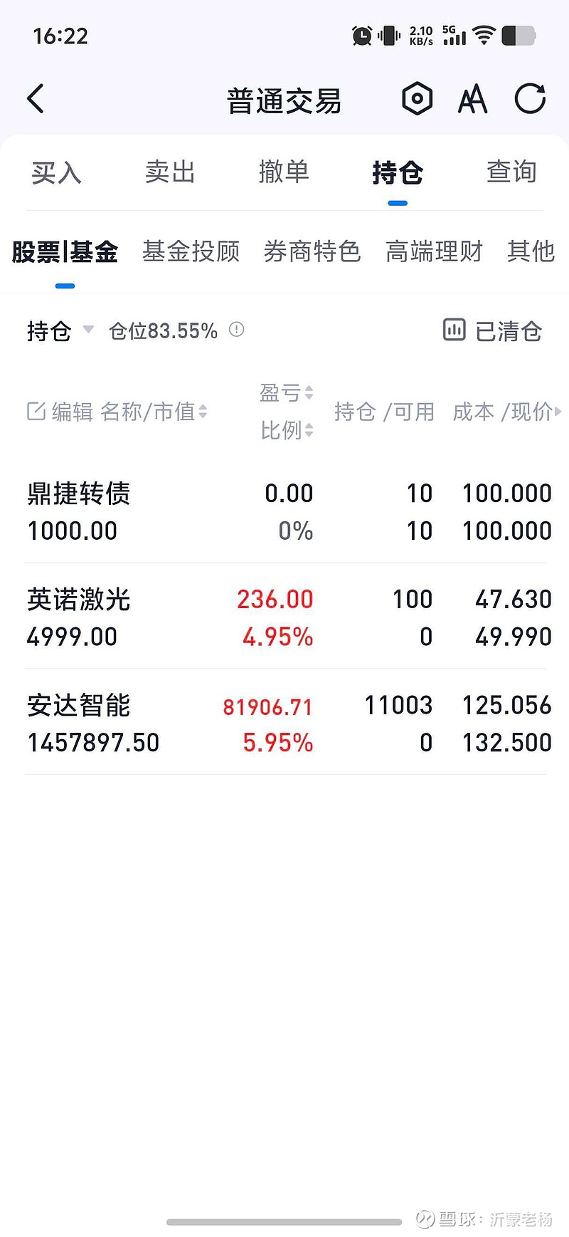 $安达智能(SH688125)$ 抬头看星空。那颗最亮的星每天都在变化着位置上周五还在说卖飞了安通控股。今天就跌停板考验速度了。今天追高买入部分安达。下午大盘调整,走势一直均线上还凑合。明天科创新股强一上市。板块带动还是有安全边际的。