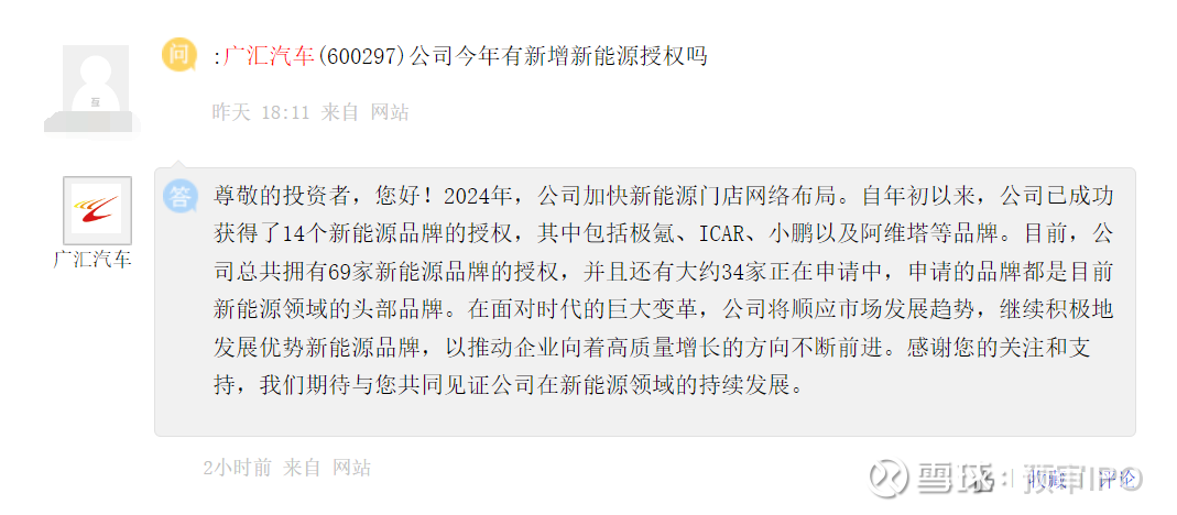 瑞财经 赵盼盼 5月31日,广汇汽车在互动平台表示,2024年,公司加快新能源门店网络布局。自年初以来,公司已成功获得了14个新能源品牌的授权,其中包括极氪、ICAR、小鹏以及阿维塔等品牌。