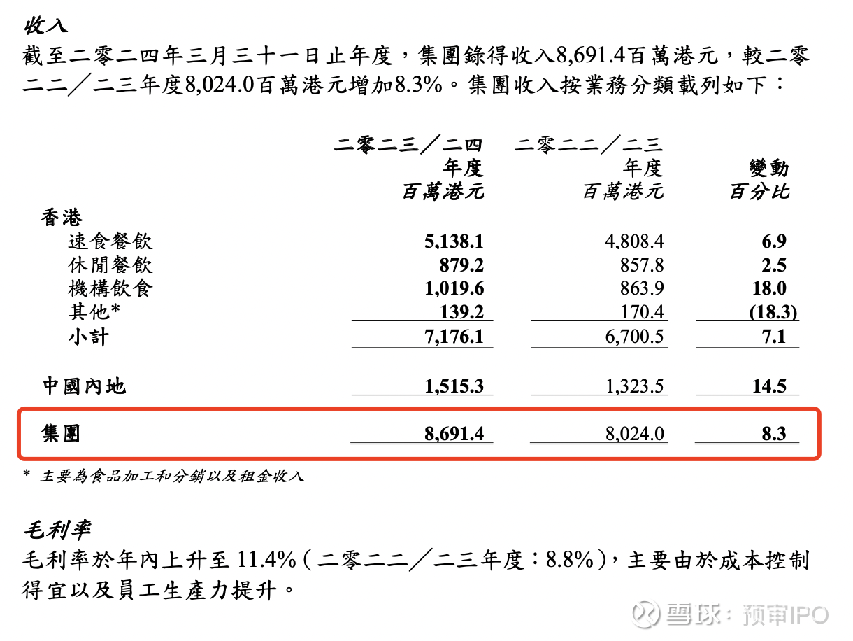 报告期内,集团收入约86.91亿港元,同比增加8.3%;股东应占溢利为3.31亿港元,同比增加199.5%;集团毛利率为11.4%,较上一报告期8.8%的毛利率有所增长。