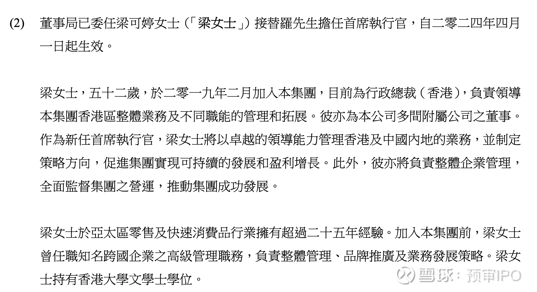而不久前的4月1日,大家乐集团首席执行官罗德承(集团创始人罗开睦之子)宣布退任,接任首席执行官的梁可婷于2019年加入大家乐集团,此前在亚太区零售及快速消费品行业拥有超过25年的工作经验。
