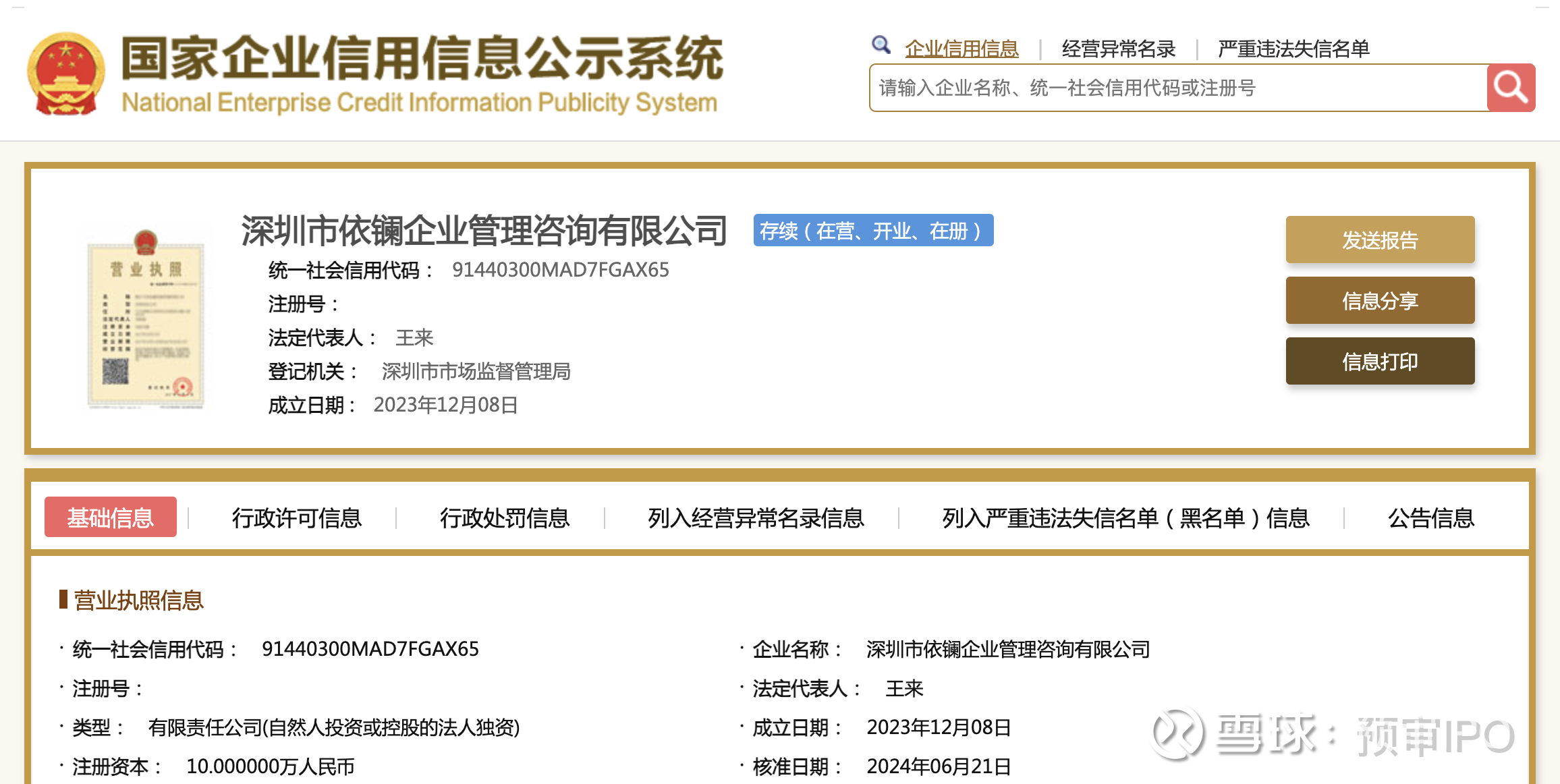 深圳依镧成立于2023年12月,注册资本10万元,法定代表人王来,经营范围包括财务咨询;融资咨询服务;以自有资金从事投资活动等。