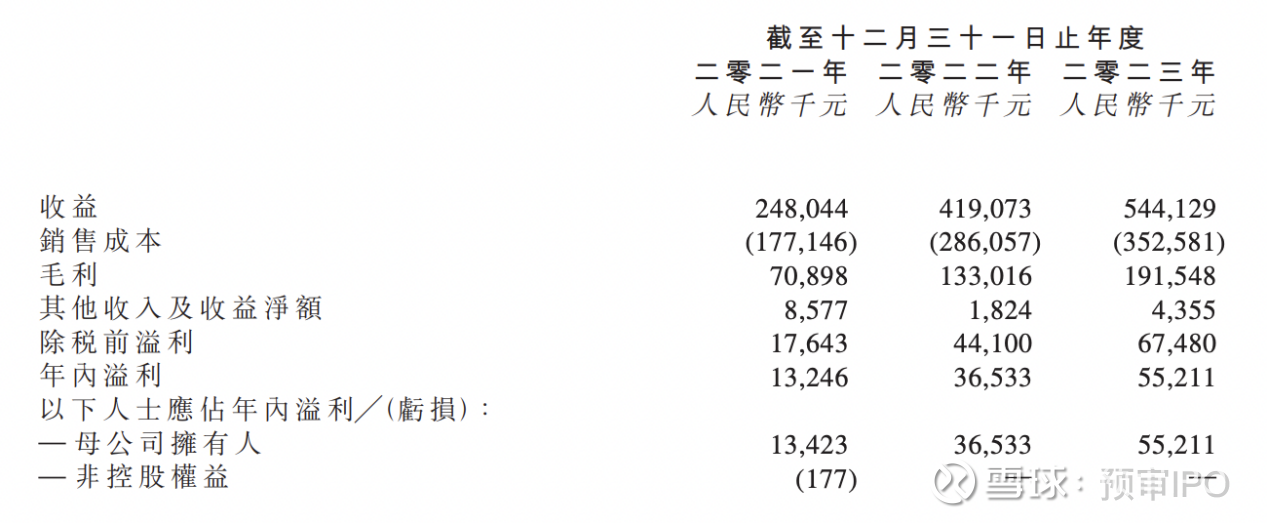 业绩方面,2021年-2023年,瑞昌国际控股的收益分别约为2.48亿元、4.19亿元及5.44亿元;同期公司的年内溢利分别约为1324.6万元、3653.3万元及5521.1万元。