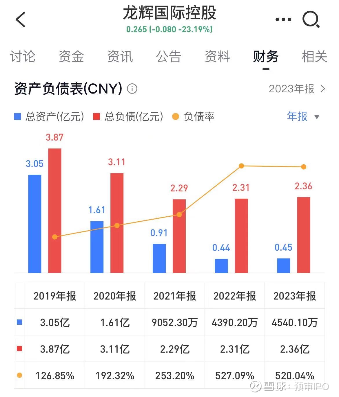 业绩方面,2019年-2023年,龙辉国际控股分别亏损1.28亿元、6905.8万元、3395.4万元、6230.5万元、1435.5万元。2023年,其负债率达520.04%。