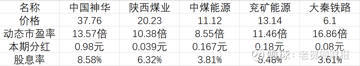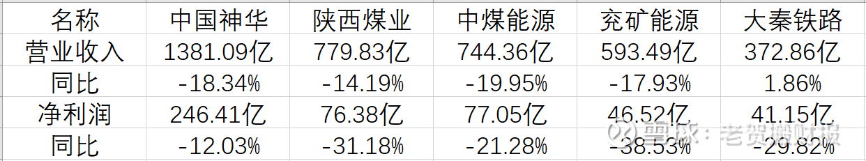 书归正传,今天来看看煤炭股的半年报。老贺选了四家规模靠前的煤炭企业,以及运煤的企业大秦铁路。