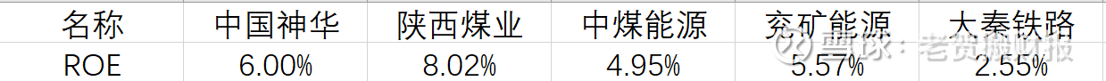 中煤能源的 ROE 为 4.95%;