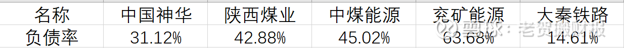 中国神华的负债率为 31.12%;