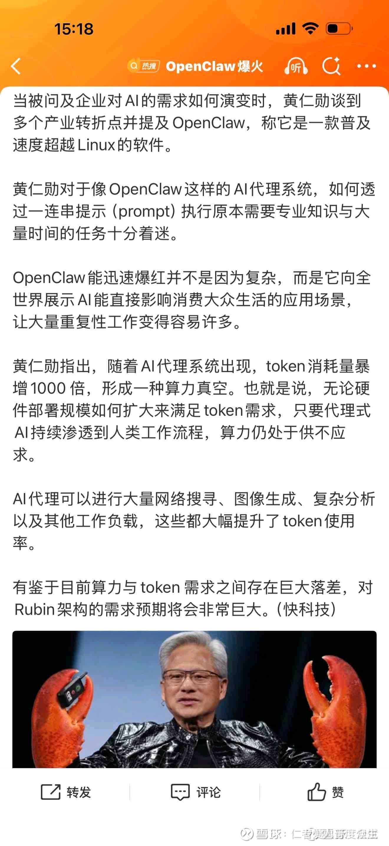 你说的“龙虾”是指AI智能体开源项目 OpenClaw(因图标像红龙虾得名)。浪潮信息作为AI服务器龙头,已从硬件、软件、方案、生态四方面深度布局OpenClaw,是其算力底座核心厂商。