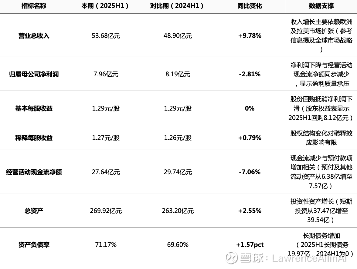 1.收入增长动能放缓:2025H1收入增速9.78%,低于2024H1的13.67%,需关注新兴市场扩张是否面临瓶颈。