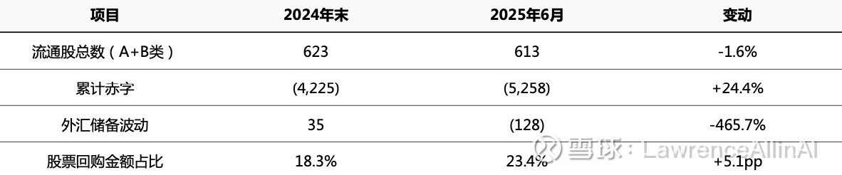 2.资本分配策略转变:股票回购力度同比增强(2025H1回购18.2亿vs 2024H1的15.0亿),同时维持7.4亿美元现金储备,反映平衡股东回报与战略投资的意图