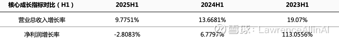 1.收入增速持续放缓:营业总收入同比增长率从2023H1的19.07%逐年下降至2025H1的9.7751%,表明市场扩张或业务增长动力减弱。