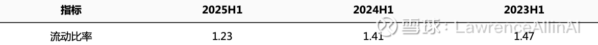 1.流动比率连续三年下降,2025H1(1.23)较2023H1(1.47)降幅达16.3%,短期流动性压力显著上升。