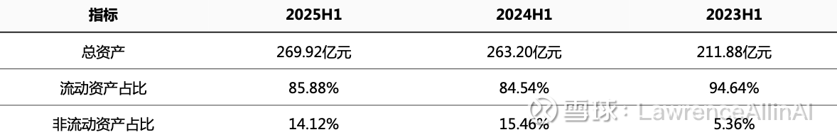 1. 总资产规模持续增长,2025H1达269.92亿元,较2023H1增长27.4%,反映业务扩张能力。