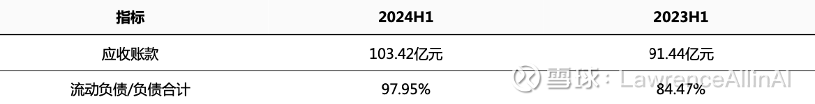 1. 应收账款同比2023H1增长13.1%(91.44亿→103.42亿),需警惕回款周期延长风险。