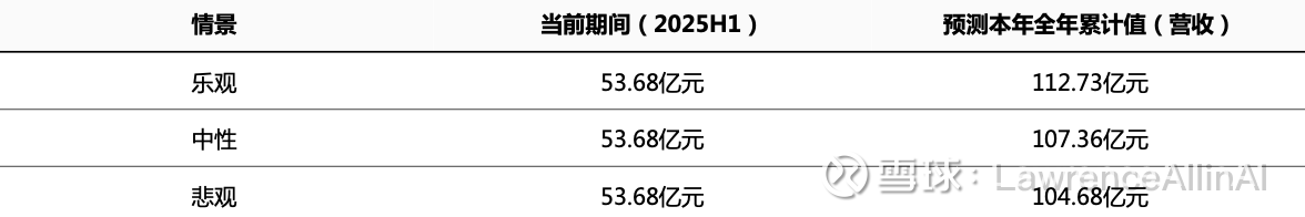 2.历史基数支撑:中性预测直接将2025H1营收翻倍(107.36亿元),与历史增速放缓的线性趋势一致。