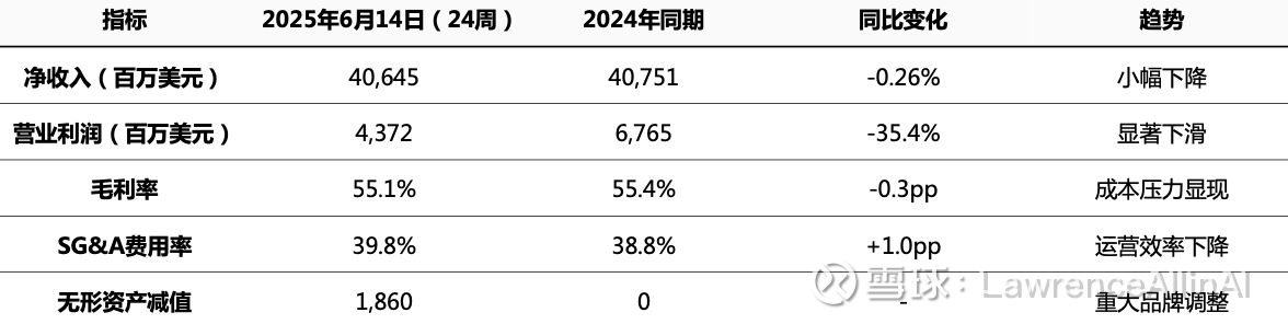 1.资产减值重创利润:18.6亿美元无形资产减值(占净利润减少额的47%)是利润腰斩的核心因素,反映品牌组合战略调整压力。