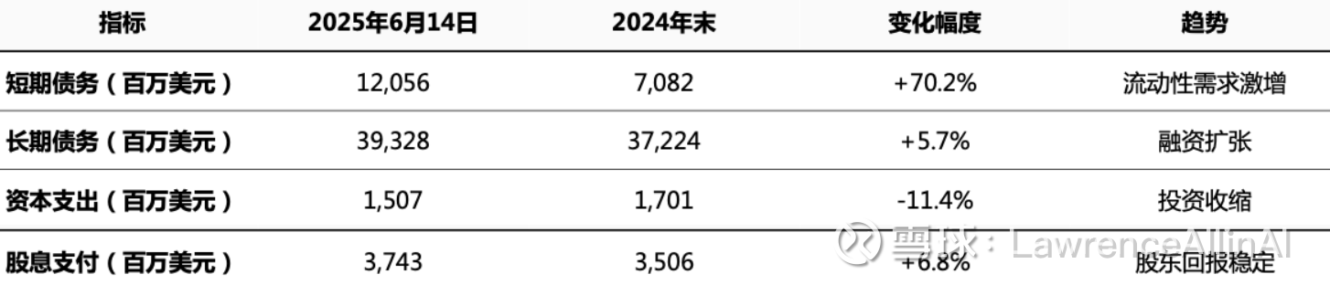 1.债务结构短期化:短期债务同比激增70%,而长期债务仅增长5.7%,或反映企业为应对市场不确定性优先选择灵活融资,但需关注偿债压力。