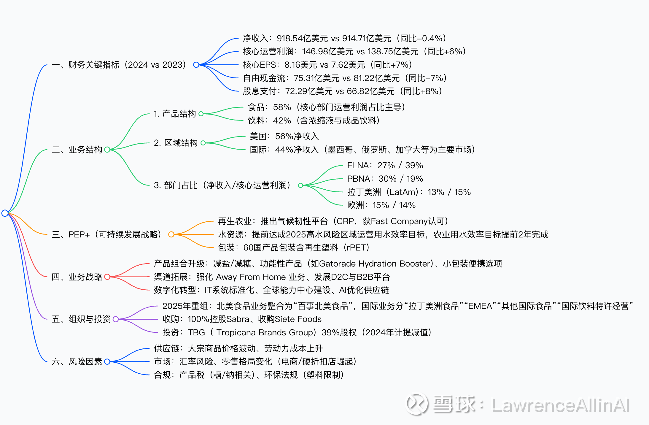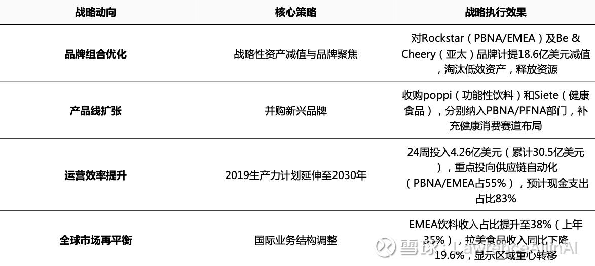 结论:PepsiCo通过"品牌精简+并购升级+运营提效"三重战略组合,在传统快消品增长放缓背景下,构建更具弹性的业务结构,其战略执行呈现强资源再配置特征。