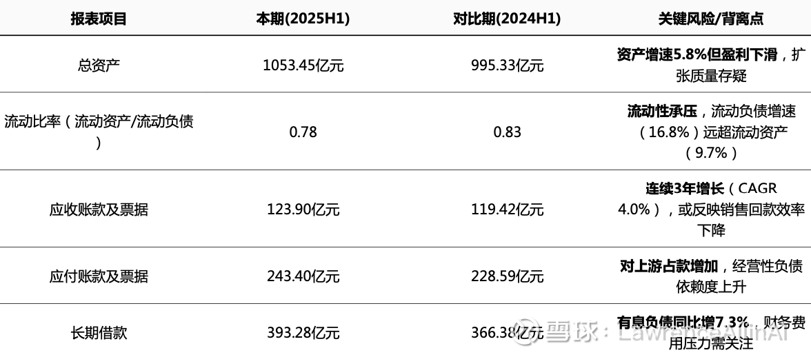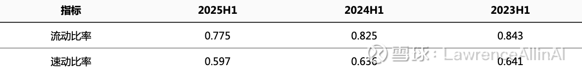 1. 流动比率连续三年低于1且持续下滑,2025H1仅0.775,流动资产对短期负债覆盖不足