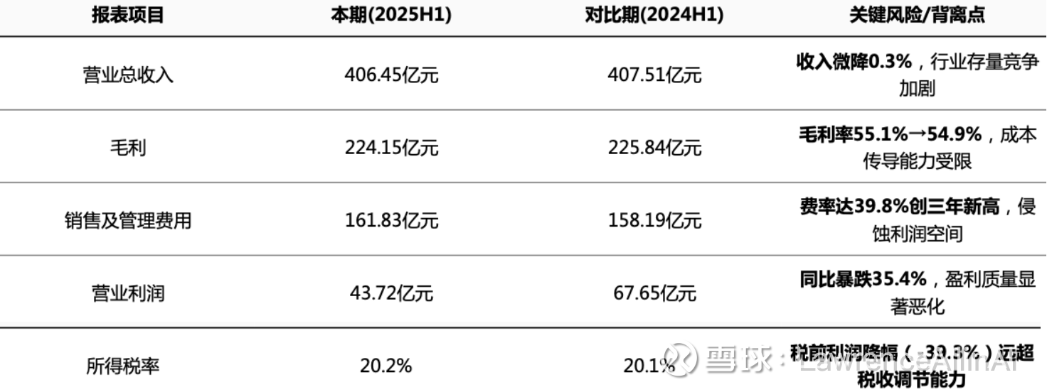 1.成本压力显性化:2025H1净利润同比骤降39.57%(51.25亿→30.97亿),降幅是营收变化的150倍,表明成本端出现结构性压力。