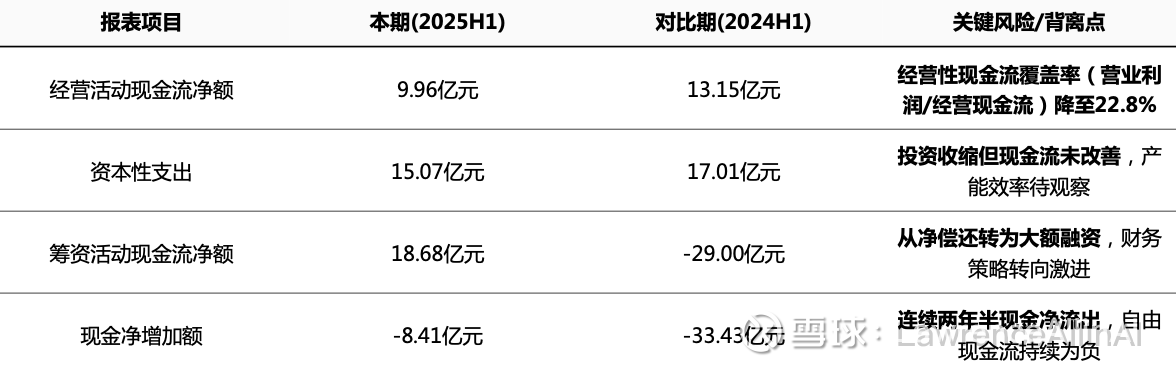 2.投资强度显著加大:2025H1投资活动现金流净流出同比扩大183.8%,表明企业进入资本开支高峰期。