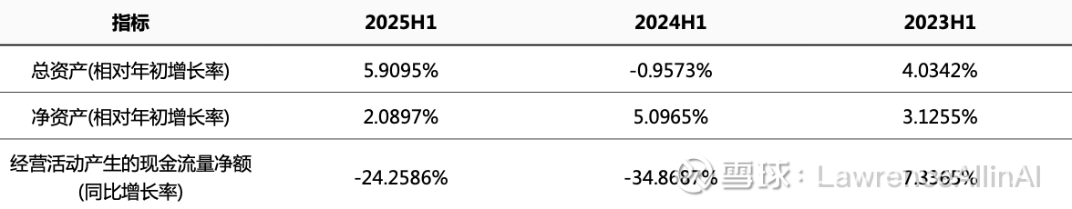 1.资产扩张依赖短期调整:总资产在2024H1收缩后,2025H1恢复至5.91%增长,但同期净资产增速却从5.10%降至2.09%,可能因负债增加或利润分配导致权益积累放缓。