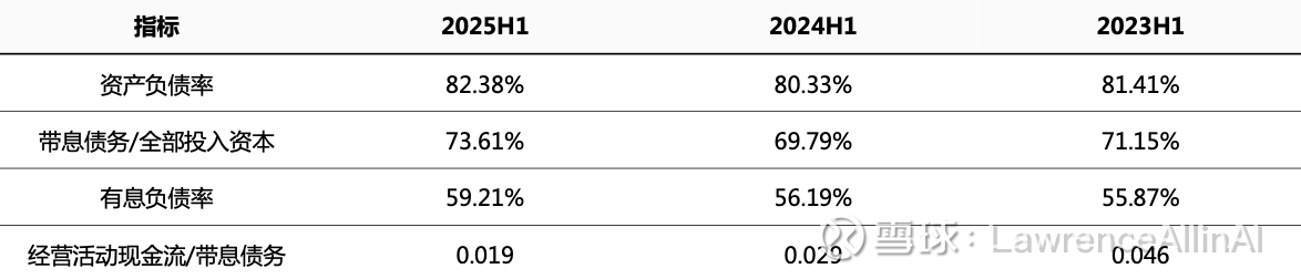 1. 资产负债率连续三年高于80%,2025H1升至82.38%,长期债务压力持续高位