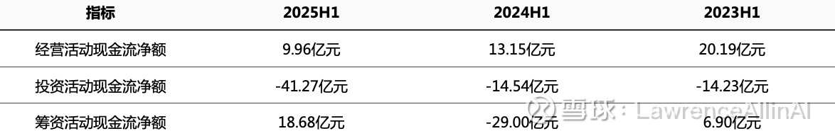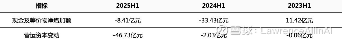 1.现金储备持续消耗:连续两年现金净减少,2025H1净流出8.41亿元,较2024H1(-33.43亿元)压力减轻但仍未转正。