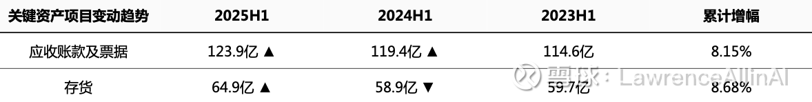 1. 应收账款连续三年增长,2025H1同比增幅3.75%,可能反映销售信用政策调整