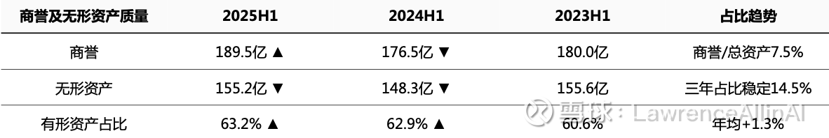 1. 商誉2025H1环比增长7.4%,可能涉及新并购行为