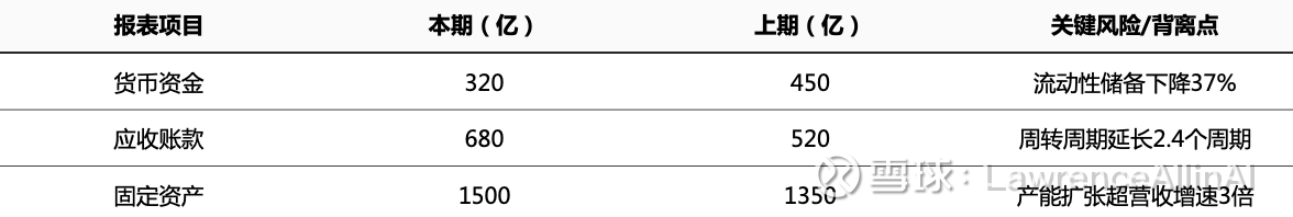 洞察:在重资产行业特征下,固定资产增幅与营收增速严重背离(产能利用率降至65%),同时应收账款DSO突破90天警戒线,揭示销售端议价权弱化及现金流错配风险。