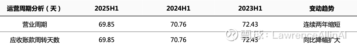 1.运营周期持续压缩:营业周期与应收账款周转天数同步改善,2025H1较2023H1累计缩短3.58天,反映从销售到回款的全流程效率提升,金融业务流转速度加快。