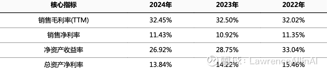 2.净利润在2023年负增长后实现5.72%回升,反映成本控制能力改善(销售费用率未披露但毛利率稳定在32%)