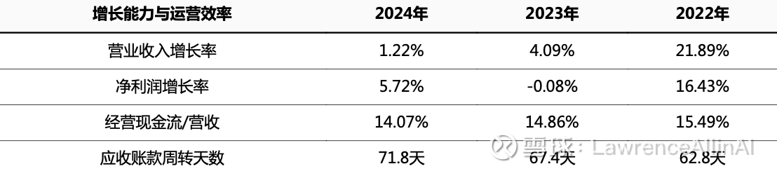 1.收入增速从2022年的21.89%断崖式下跌至2024年1.22%,显示核心业务增长动能不足,需关注行业竞争格局变化