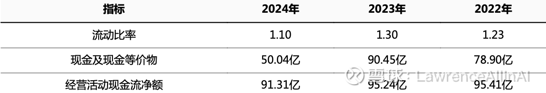 1.流动比率连续三年低于1.3,2024年降至1.10,显示短期偿债能力边际弱化