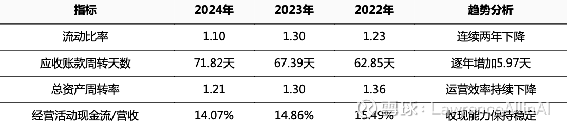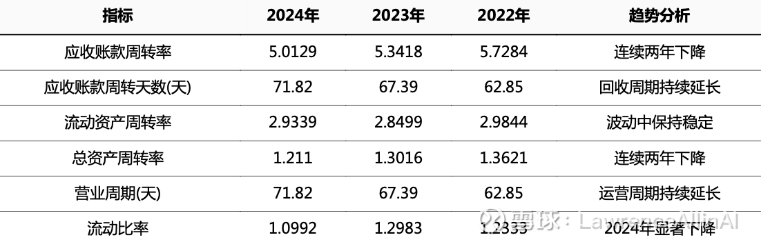 2.资产效率持续承压:总资产周转率降至1.21(三年降11%),应收账款周转天数突破72天,运营周期延长侵蚀资本回报
