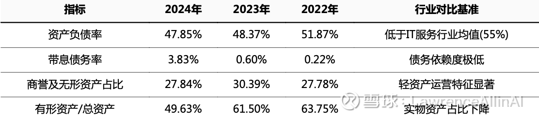1.毛利率弹性:2024年销售毛利率32.45%低于IT服务头部企业(IBM 54%),但资本支出/折旧比-0.24显示轻资产运营优势,技术复用可能提升毛利。