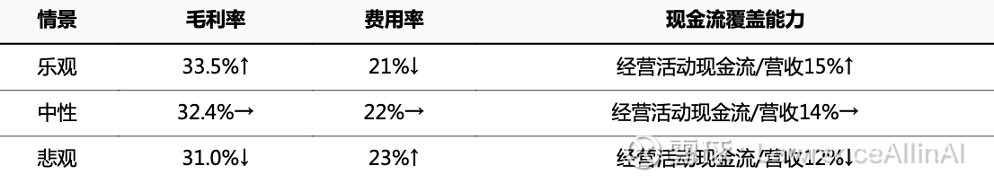 2.费用刚性:员工成本占比超60%(人均创收83.8万元 vs IBM 245万元),悲观情景下裁员滞后性将推高费用率。