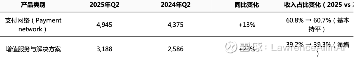 1.收入结构优化:增值服务收入占比持续提升(2025年Q2占比39.2%,同比+3.1pp),反映公司从传统支付网络向高附加值服务转型的行业趋势。