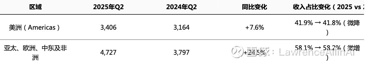 2. 新兴市场贡献突出:亚太、欧洲、中东及非洲区域营收增速24.5%,全球化布局成效显著