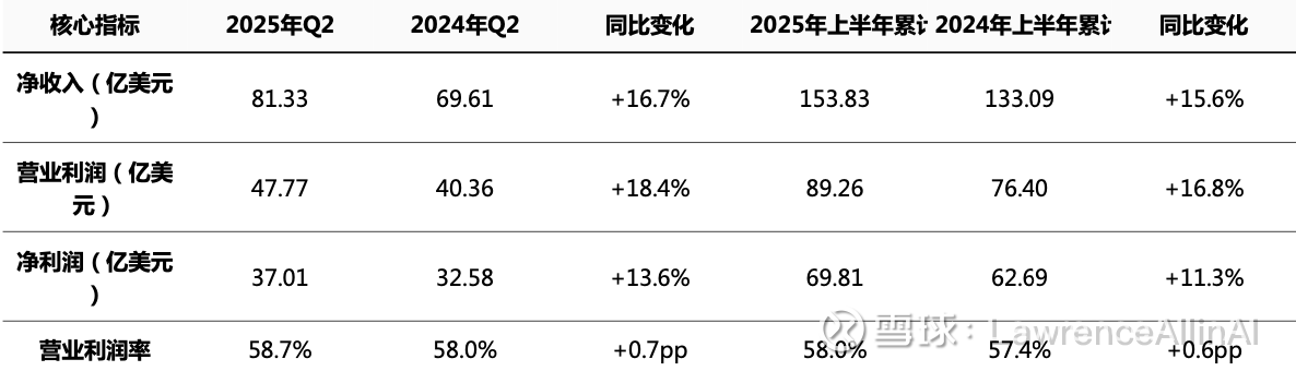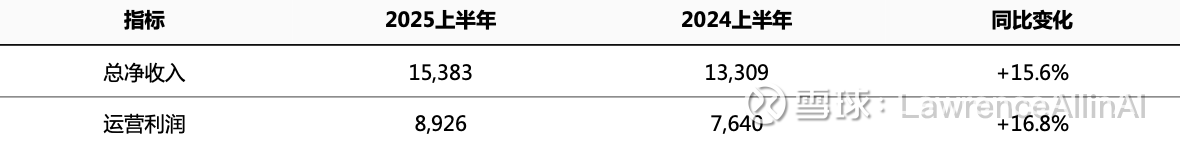 1.规模效应凸显:收入与利润增速均超15%,运营利润率从57.4%(2024H1)提升至58.0%(2025H1),体现业务扩张的同时成本控制有效。