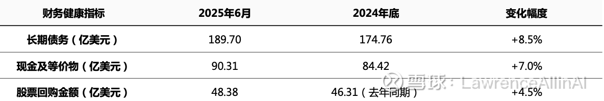 1.资本策略调整:债务规模扩张与股票回购同步进行(2025年上半年回购48亿美元),显示行业头部企业通过杠杆优化资本结构的普遍策略。