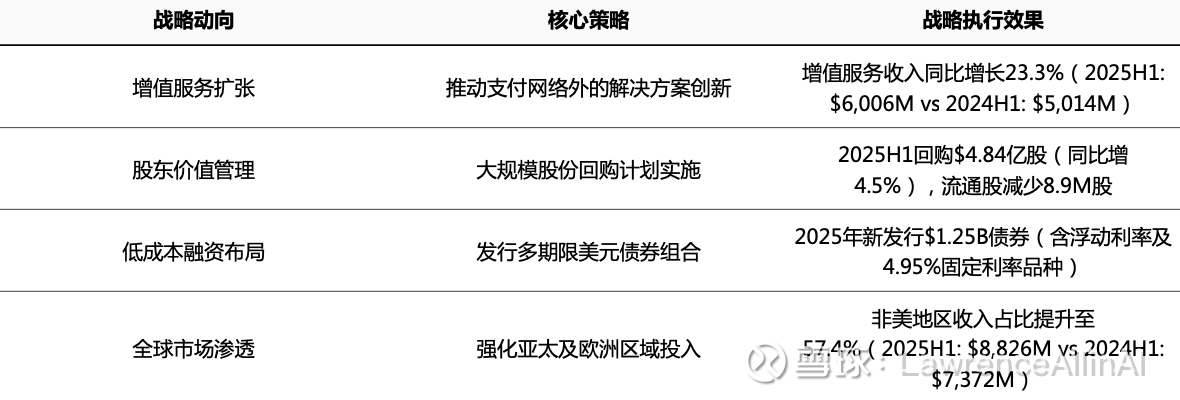 结论:Mastercard通过"核心支付网络强化+高毛利增值服务拓展"的双轮驱动,配合精细化资本运作,正在构建抗周期能力更强的全球支付生态系统。