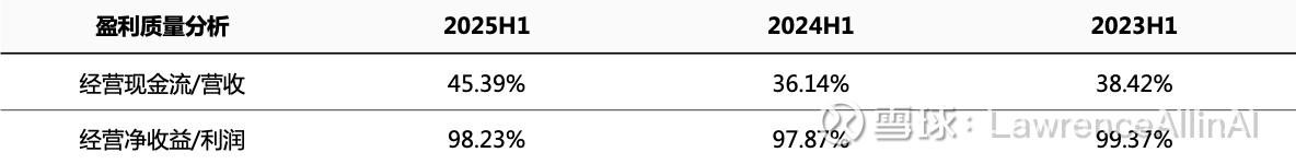 1. 经营性现金流占营收比例持续高于35%,2025H1提升至45.39%,现金流创造能力增强