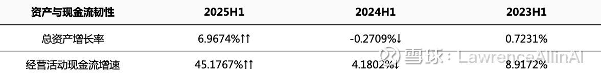 1.资产扩张重启:总资产在2024H1负增长后于2025H1回升至6.97%,显示金融资产配置(如信贷投放或投资组合)重新扩张,可能配合行业流动性宽松周期。