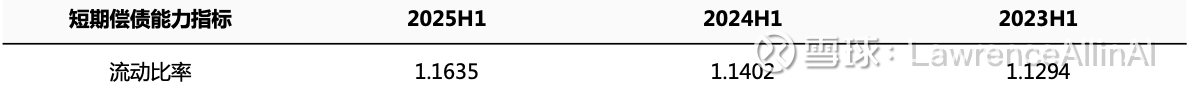 1. 流动比率连续三年持续改善,2025H1达到1.16,显示流动资产对流动负债的覆盖能力逐年增强