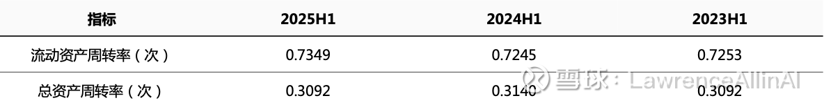 流动与总资产效率稳定:流动资产周转率(0.72-0.73次)和总资产周转率(0.309-0.314次)三年内波动幅度不足2%,表明整体资产运营效率保持行业基准水平。