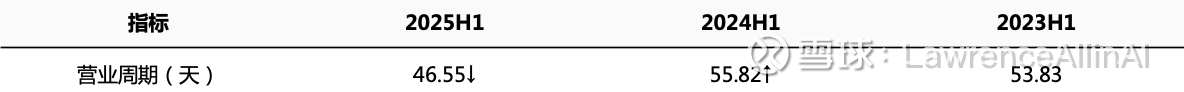 营业周期缩短释放现金流:2025H1营业周期较上年缩短9.27天(55.82→46.55天),显示供应链与回款协同效率提升,资金占用压力减轻。