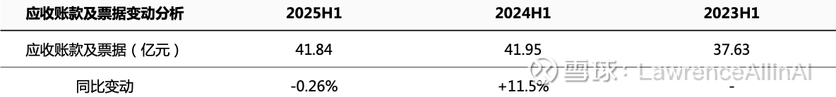 1.应收账款及票据连续两年保持高位,2025H1小幅下降至41.84亿元,但较2023H1仍增长11.2%。